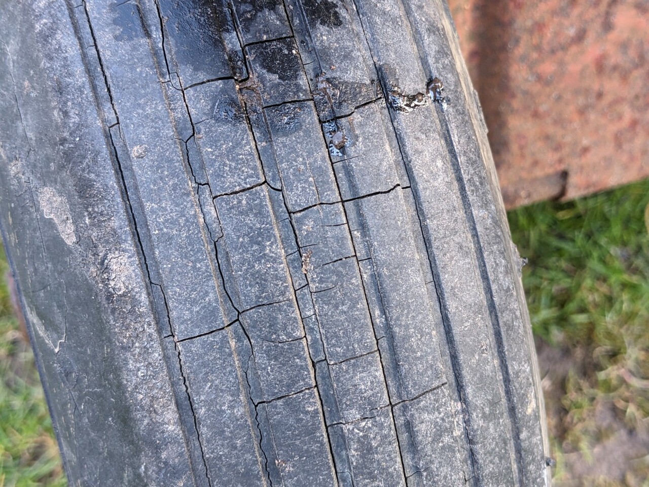 The tires might be original too, judging by their appearance and the weather cracking. The size seems a little uncommon - (2 Ply, 4.30-8 - almost look like wheelbarrow tires) The axle shaft is also a very beefy 1" diameter - Haven't taken a wheel off yet, - Does anyone know if Case used bushings or bearings in these wheel hubs? Since the trailer was originally rated for 1000 lbs I'd like to fix it up to reliably carry something close to that again. Seems like most yard carts have a 5/8 or 3/4 axle - Browsing the internet last night I didn't find any replacement wheels that used 1" bearings. I didn't have any luck finding tires or wheel assemblies with a 500 lb rating