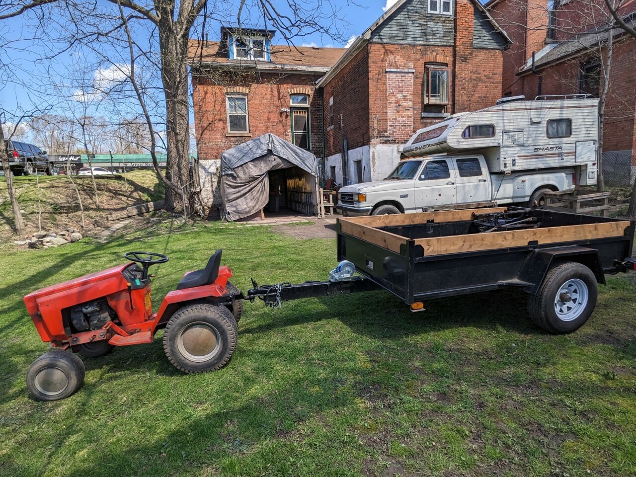 Paint was finally dry on the drop hitch this morning so I hooked up the trailer and did some yard work. Really happy with it, even if it has a rusty floor and questionable tires.