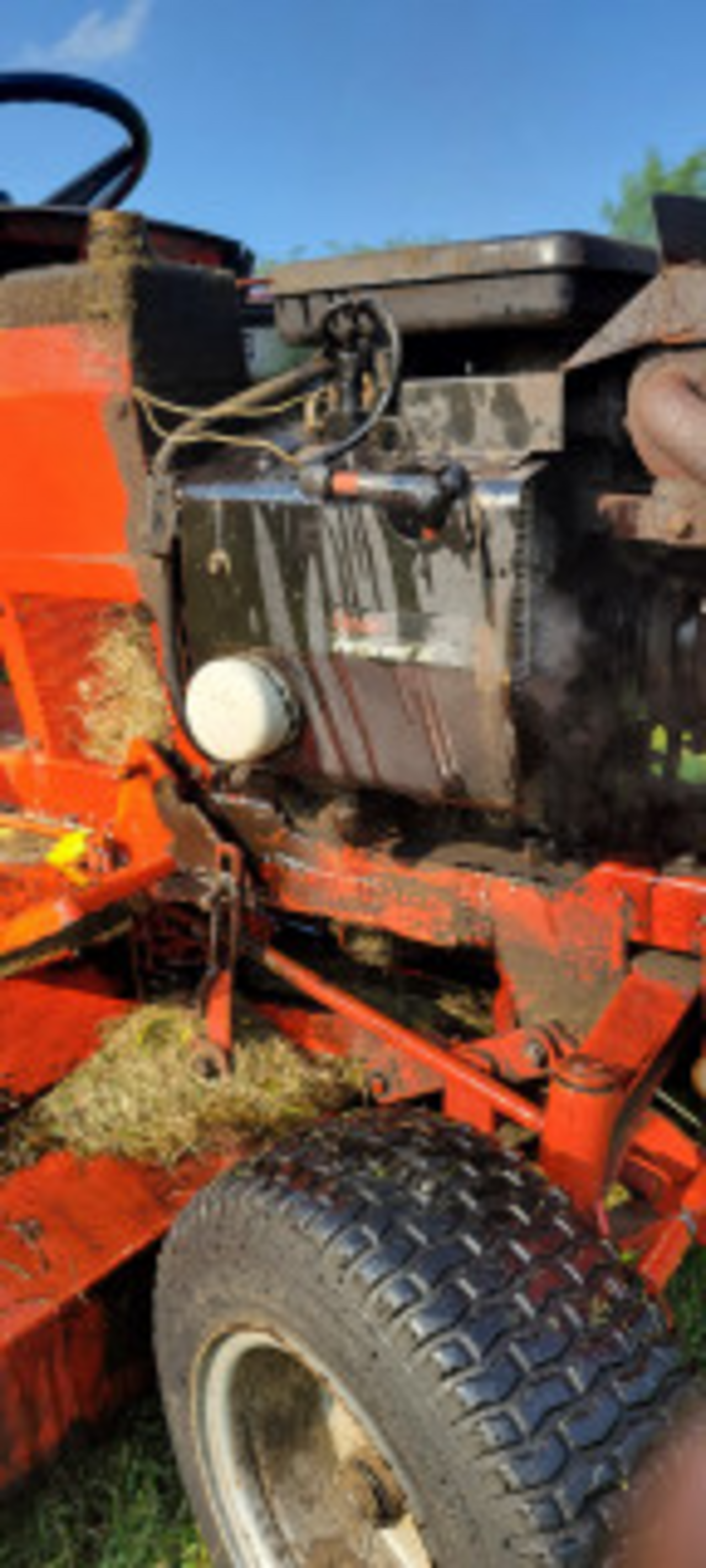 1-1/2 hours mowing the neighbors yard followed by one round on our yard. Suddenly the deck was engulfed in oil. 20240624_095912.jpgFinding the leak was out of the question while the engine and oil were hot. It adds about 30 minutes mowing time when using th 446 and 48" deck but given that we were hosting a canasta party that evening, the mowing had to be finished.20240624_095933.jpgWith the inspection/cooling panels off nothing no problems were observed. 20240624_095927.jpgEven with the deck on it, there was a visible leak on the line connecting the pump to the tcv. 20240624_100636.jpgHaving a forklift is the easy way to remove a 60" deck. This hose replacement turned out to be an easy fix.
