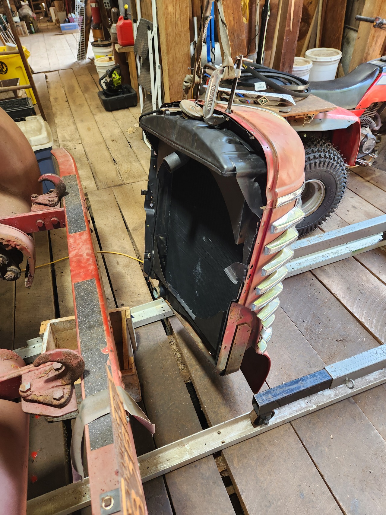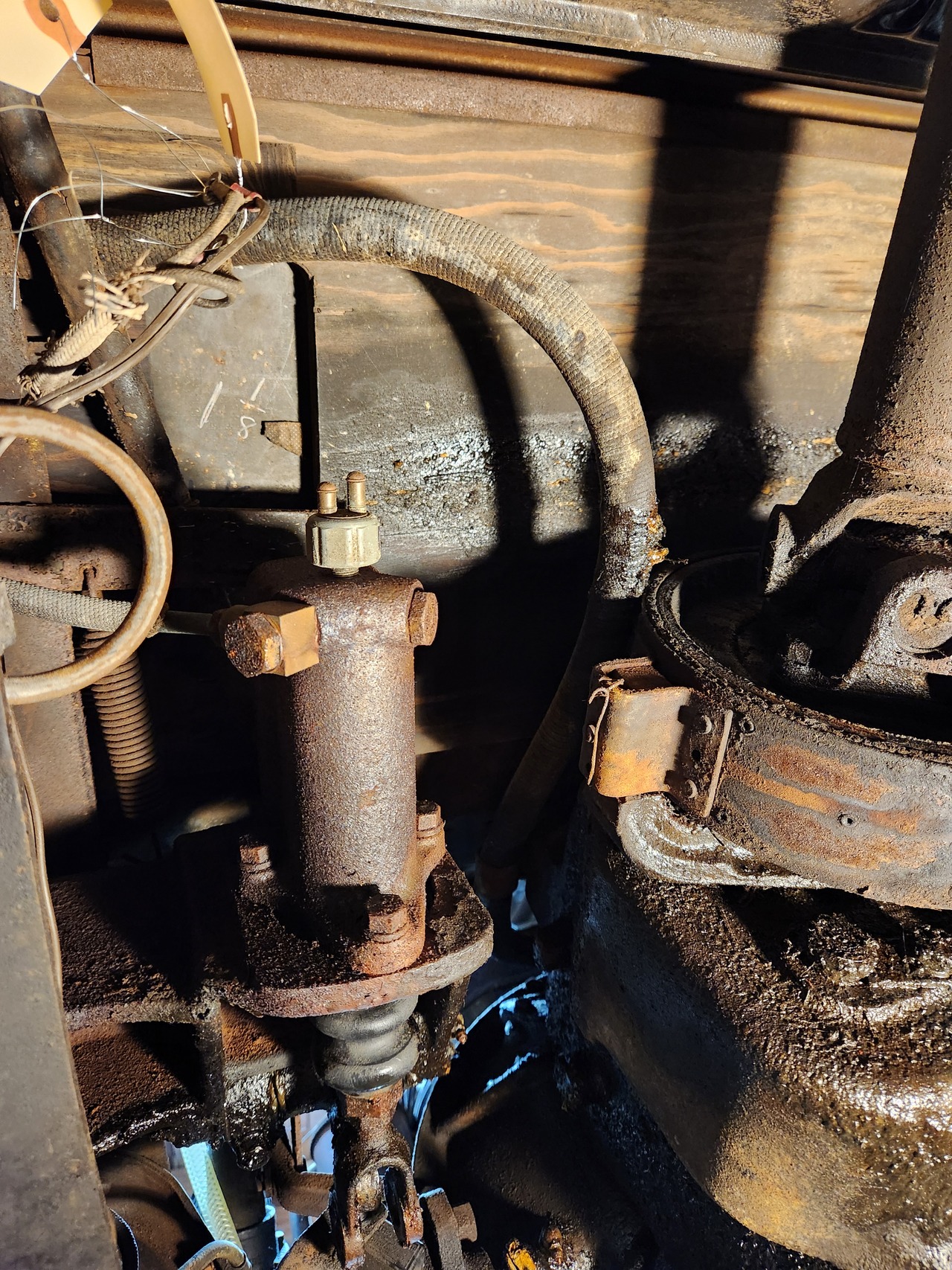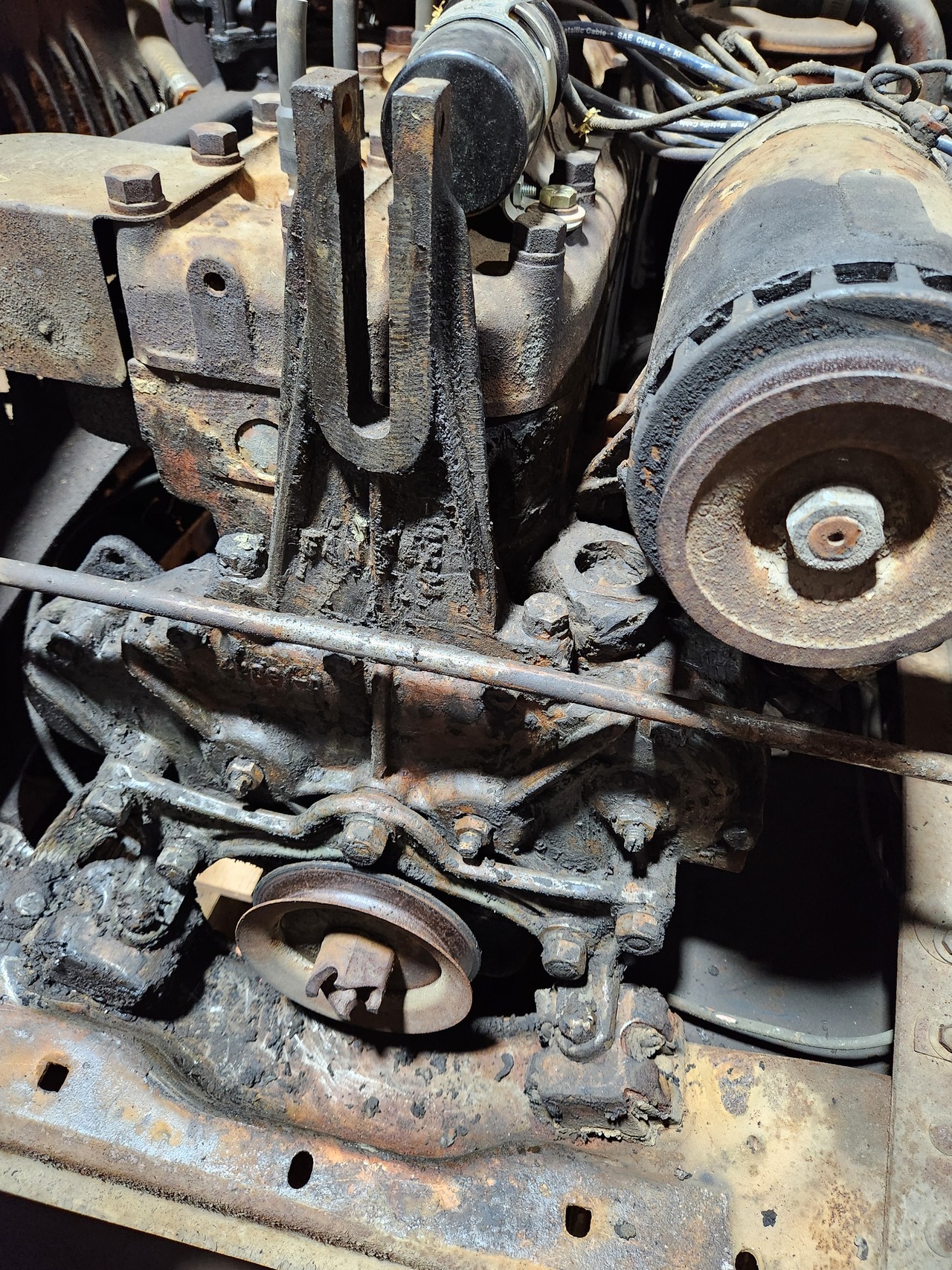 The upper power plant has been a bit cranky. I don't blame it, since I've been neglecting the project for some time. It's actually a Ford 223. All my paperwork indicates 240's, and I never actually looked until the heater delete plugs started leaking, and led to doing all the coolant lines. Seems to possibly have a fuel pickup issue in the tank too. Shut down with no fuel in the filter when there was a bunch in the tank. Guess it could be a weak pump, but will have to keep an eye on it. Have a pump, but don't want to mess with it if not needed. Put 5 gal in the tank, and didn't have any issues getting fuel. Guess it could be a collapsing line too, I would say that's due for replacement too.