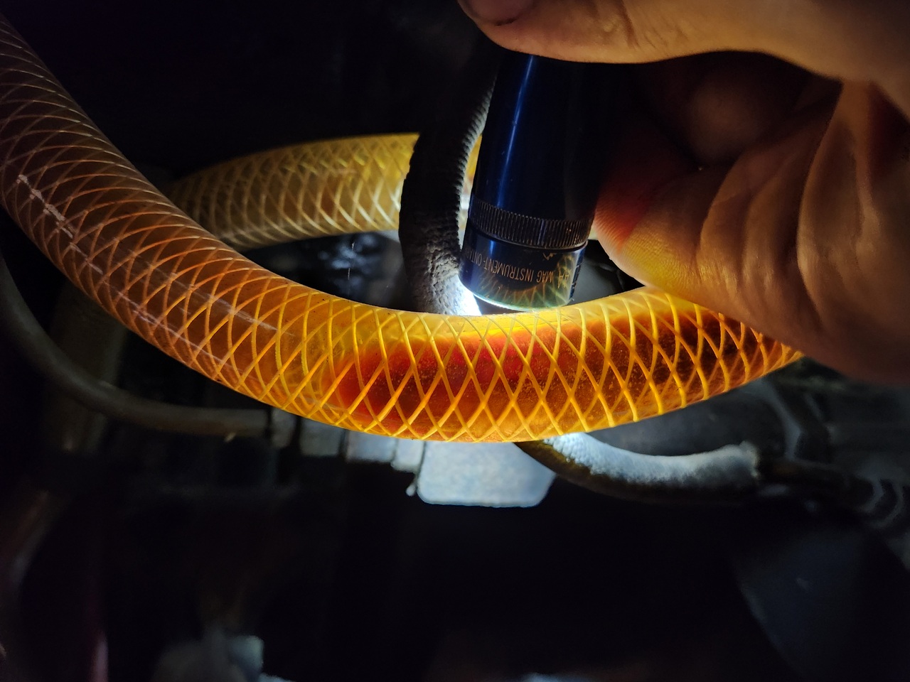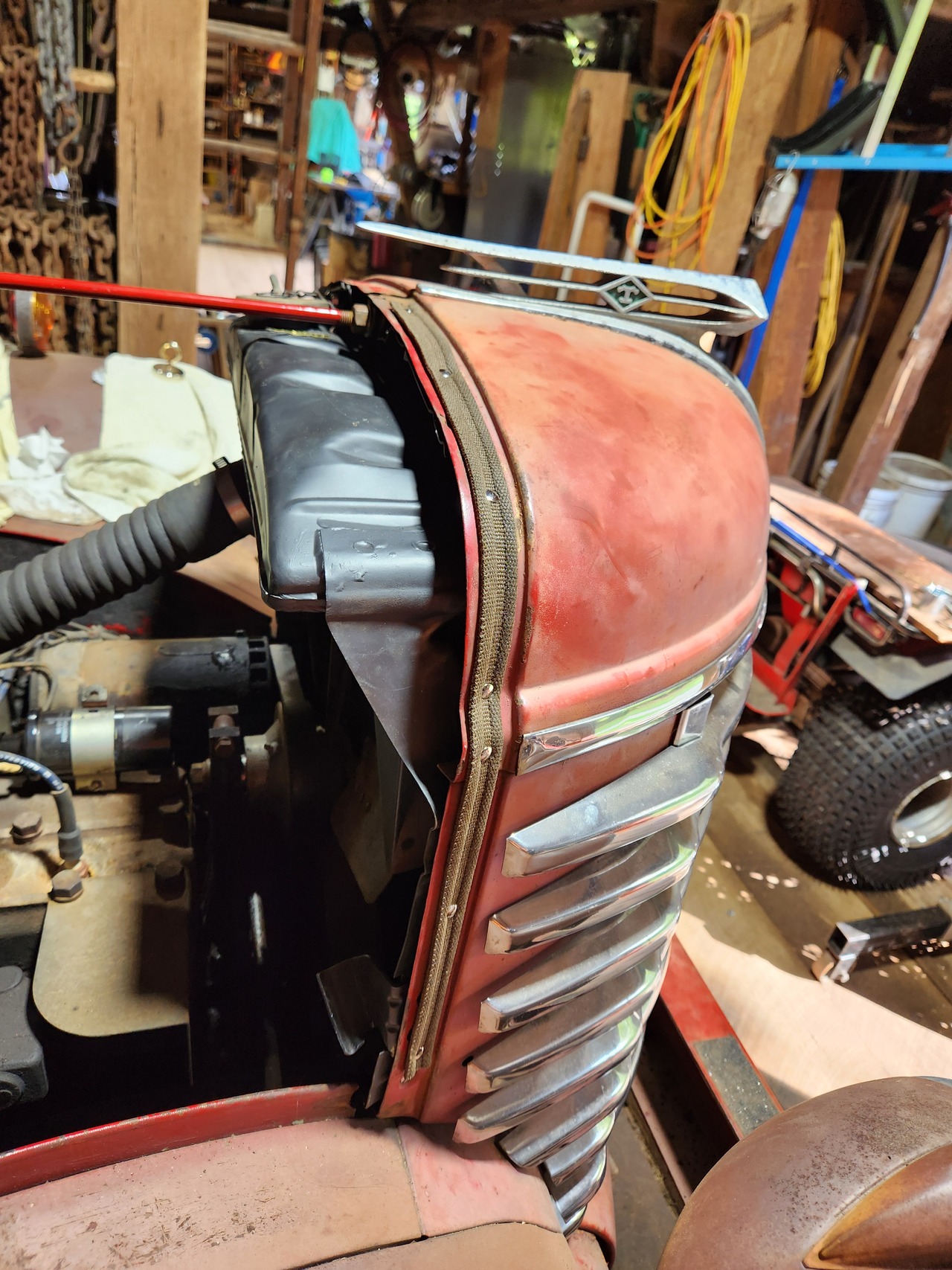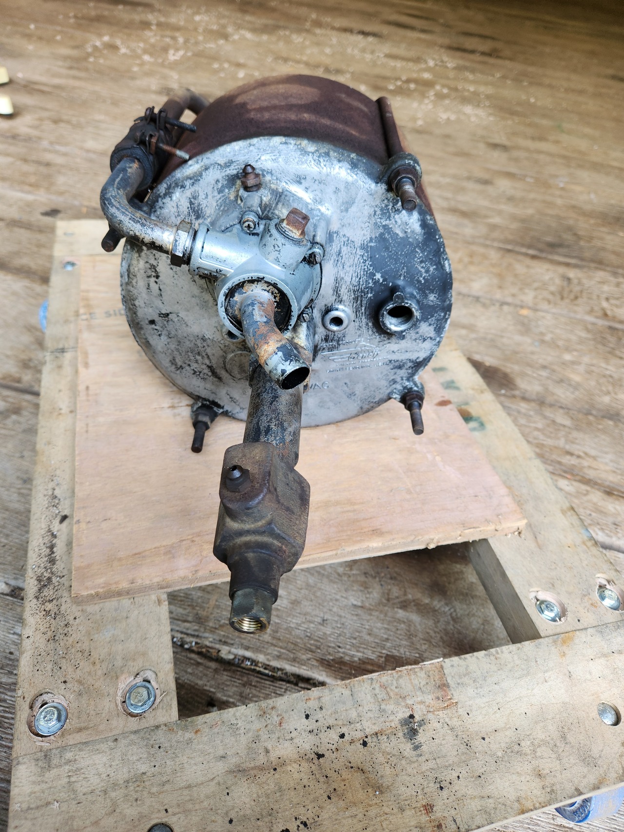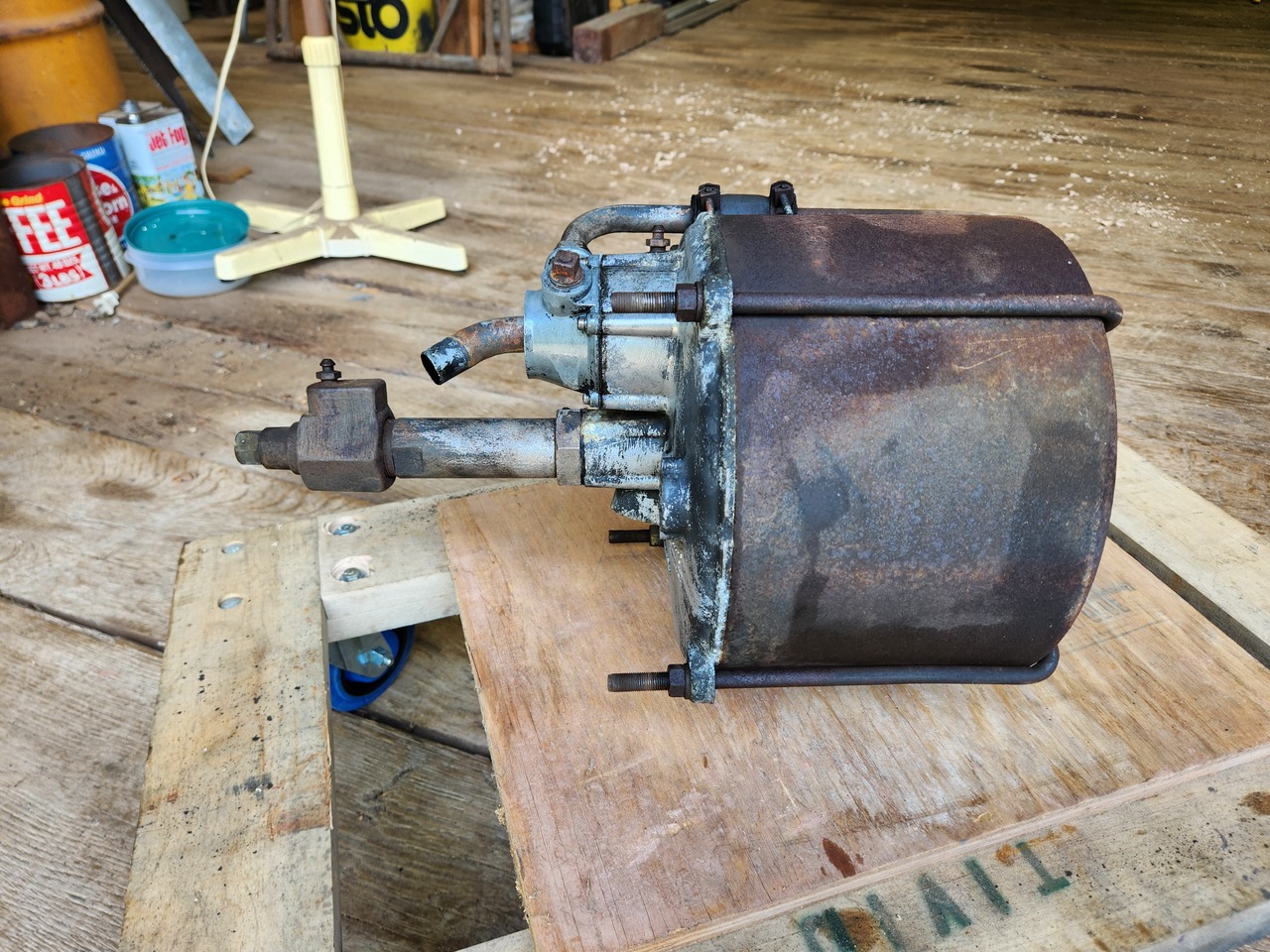 The upper power plant has been a bit cranky. I don't blame it, since I've been neglecting the project for some time. It's actually a Ford 223. All my paperwork indicates 240's, and I never actually looked until the heater delete plugs started leaking, and led to doing all the coolant lines. Seems to possibly have a fuel pickup issue in the tank too. Shut down with no fuel in the filter when there was a bunch in the tank. Guess it could be a weak pump, but will have to keep an eye on it. Have a pump, but don't want to mess with it if not needed. Put 5 gal in the tank, and didn't have any issues getting fuel. Guess it could be a collapsing line too, I would say that's due for replacement too.