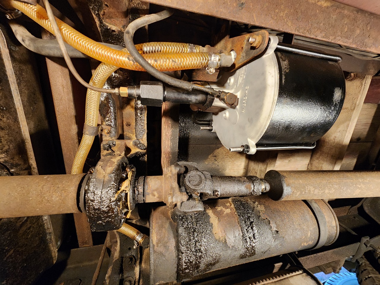 Good thoughts on the booster, but nope. It's got air brakes, and air wipers, both of which leak, but not enough to be a problem creaping around the farm.
