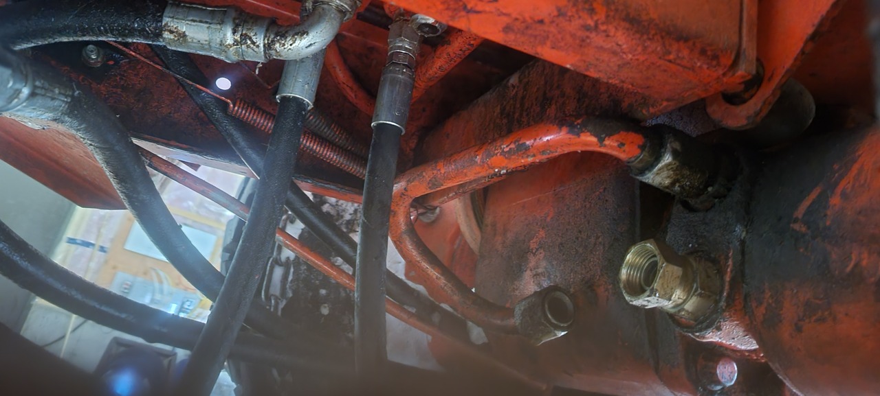 There were telltale signs of a big oil leak on every pass with the snow blower. After about 15 minutes of blowing it became obvious that something had to be corrected. One of the hoses on the three-point hitch had a split in it. Both hoses were in bad shape and there was an oil drip between the holding valve and the drive motor.