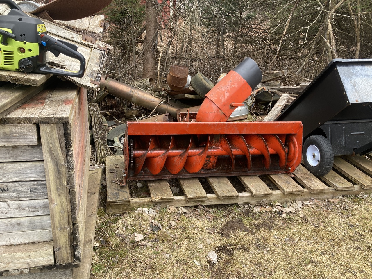So a little done today. Not snowing out, thankfully. Got the snowthrower off the Case 224 today. Wrestled the 200 lb or so thing to a pallet. And stored away. But maybe moved to a small barn for summer storage.