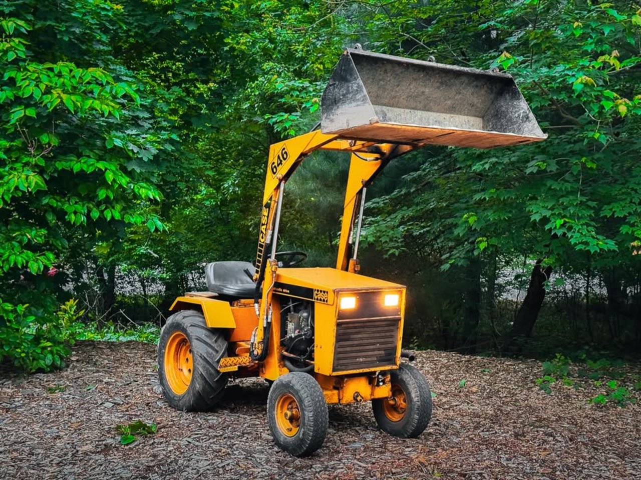 Case 646 tractor with loader- Made in USA and punches way above its weight, designed to be a small commercial piece of construction equipment versus a lawn/garden tractor with a loader added. Great for a homeowner machine or landscaping business. These machines have a large hydraulic system for their size- lifts 700lbs at full height (6ft), over 1000lbs off the ground. Comes with rear weight box and wheel weights to allow you to take advantage of the full lift capacity safely.