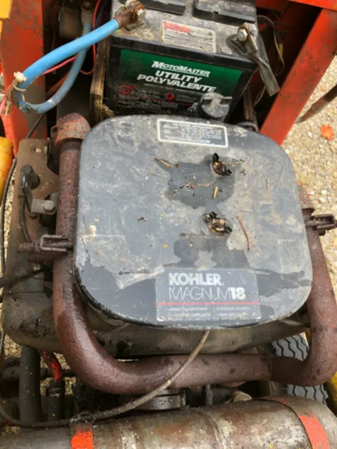 Newer rear tires; recently added Kohler V-twin, 18hp, engine (~60 hrs); dual range hydraulic transmission; Cat. "0" 3-point hitch with concrete weight box; PTO; manuals for engine and tractor.