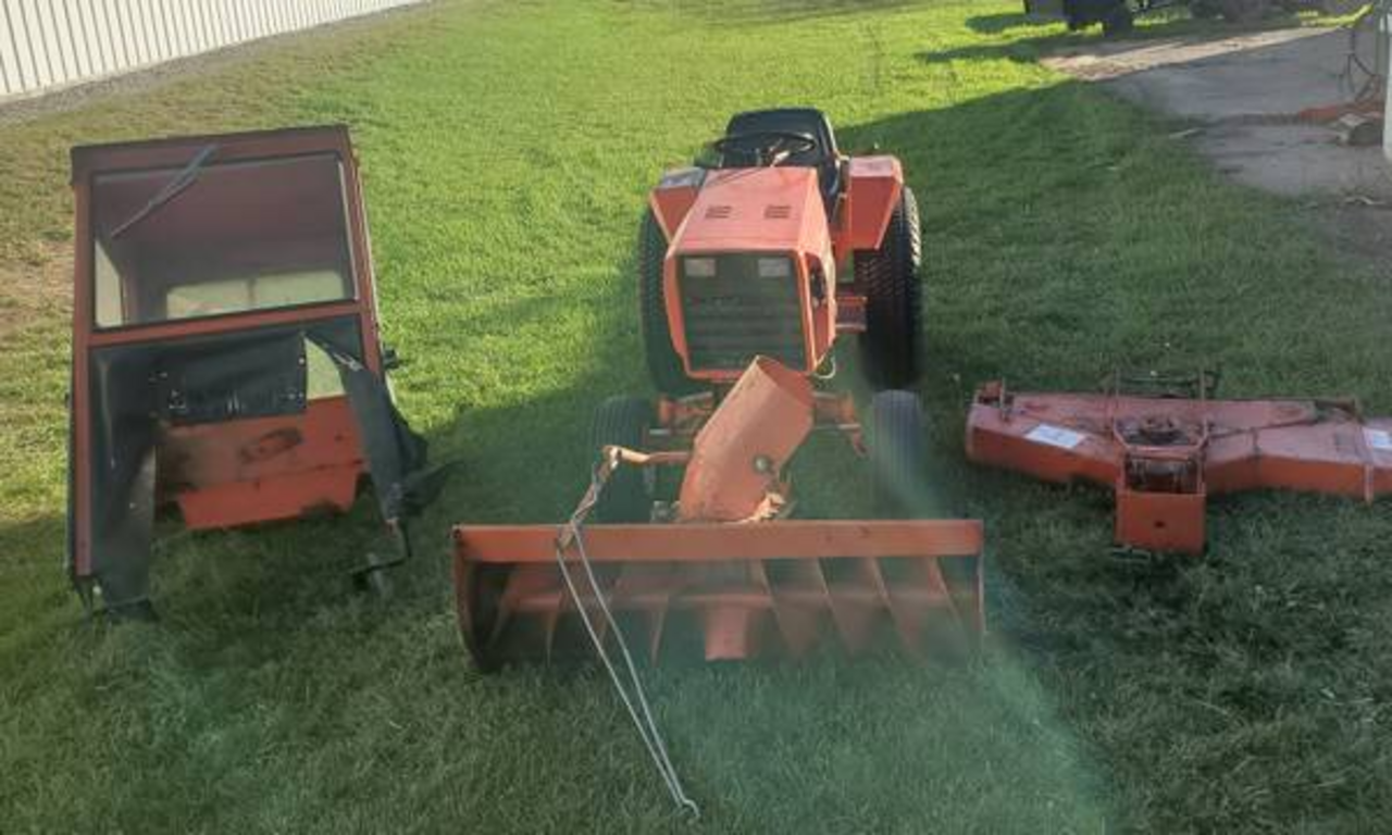 Ingersoll 448. It comes with a 48" L84 snowcaster, cab and a 48" J44 mower deck. Good running 18hp Onan with less than 900 hours. 2 speed hydraulic transmission with rear hydraulic PTO to run a tiller. There are many more attachments available for these tractors.