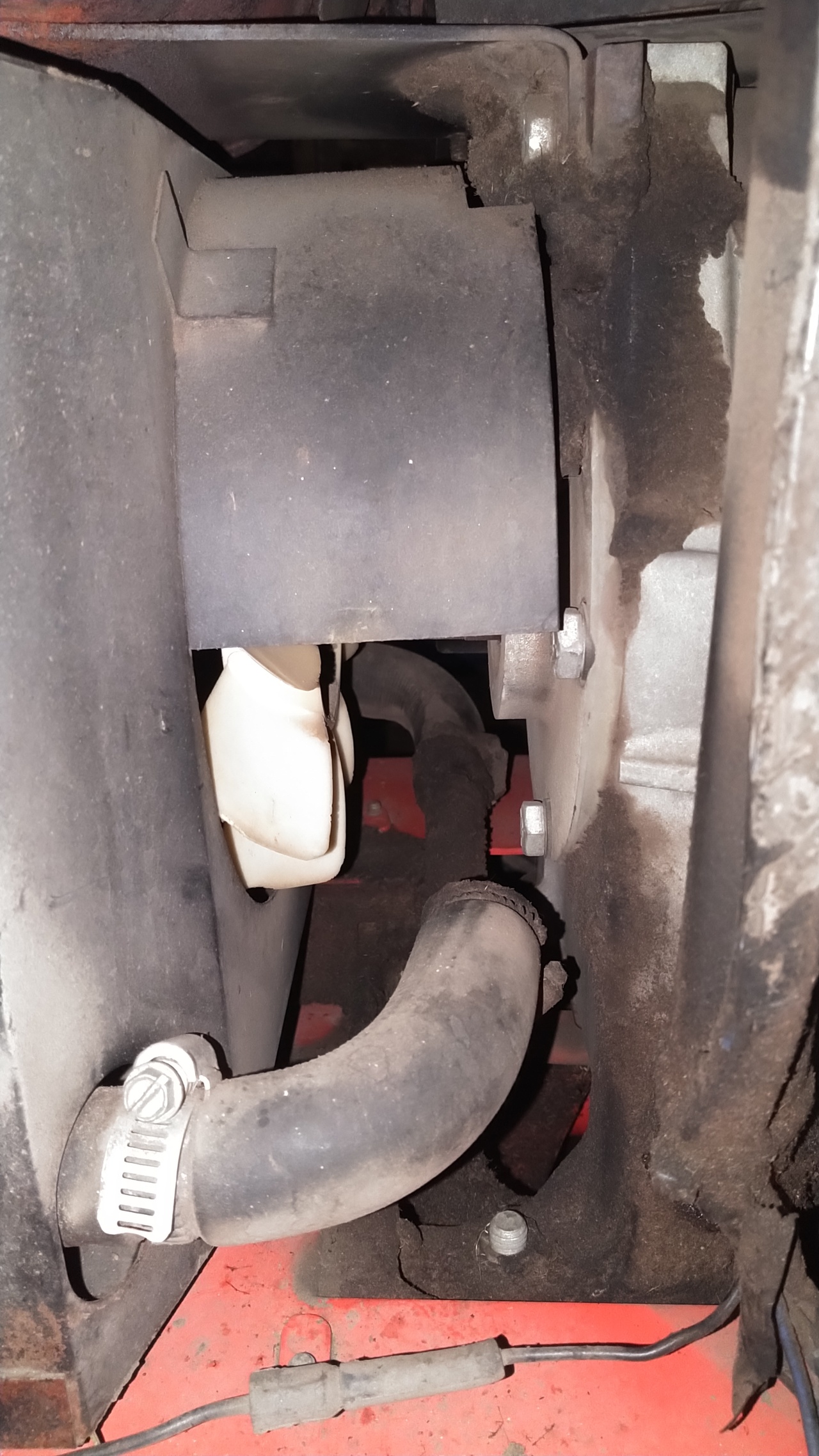 I've had an increasing oil leak, so today I dropped the belly pan to get a look. Ingy is a dirty mess. Found the problem, Just the return hose coming off the filter is loose, so loose I can't believe it just dripped. Can't get at the hose clamp to tighten without removing the cross member. Another thing to get done when I have the hydraulic system drained.