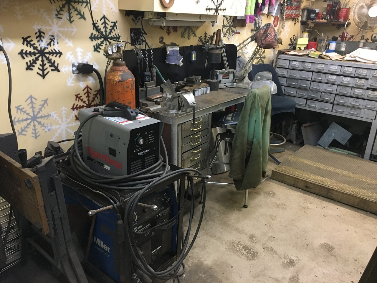 I recently rearranged my shop to be more easily accessible. I had metal working equipment in three different areas, so I consolidated them in one area. That freed up some other space in the weld area, to make it also easier to work in. I'm still working on it, which is always a pleasure to improve the shop.