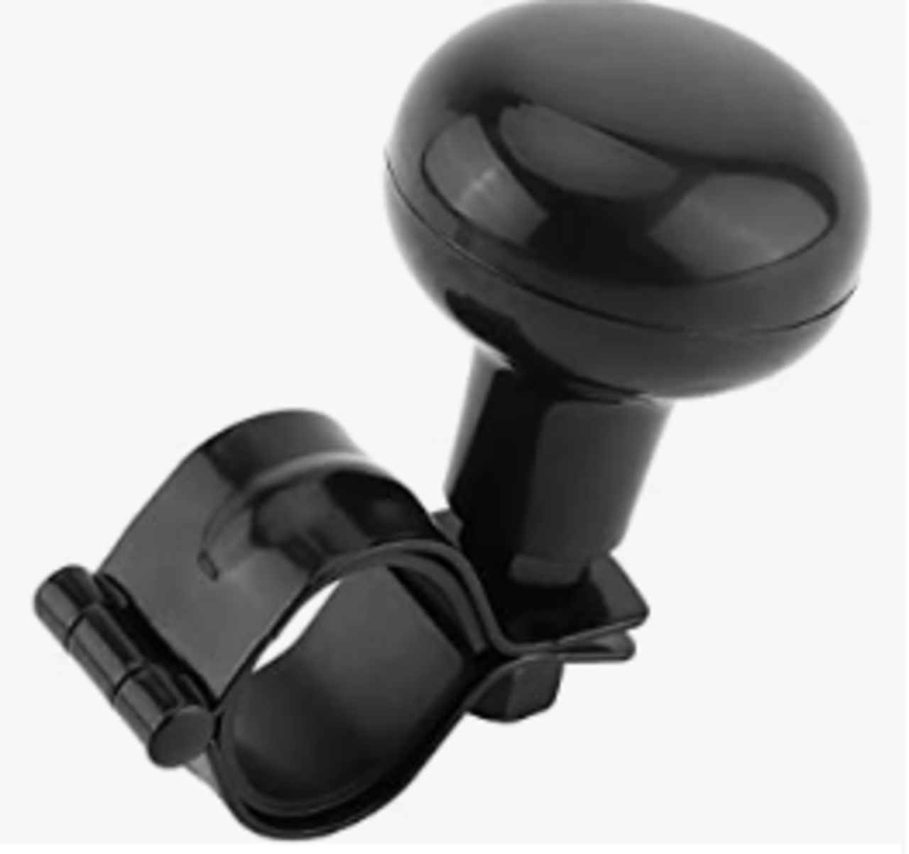 We had them on most of our larger pre power steering tractors and combines. When crossing a plow furrow, when lead wheel impacted the cut, the steering wheel could spin out of grip very rapidly and forcefully. Then as if to add insult to injury, when the next front tire hit he furrow, the steering wheel would counter spin, dead stop to dead stop. If the steering hand was in the path of the knob, 2 things were likely to happen. Using the good hand for wipe the moisture from your eyes then coddle the throbbing hand.