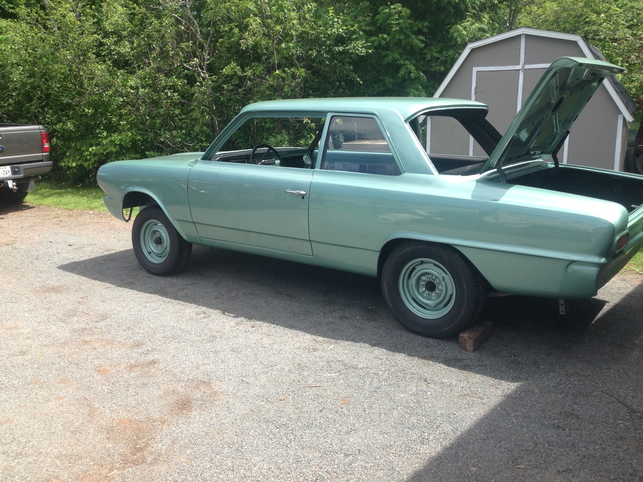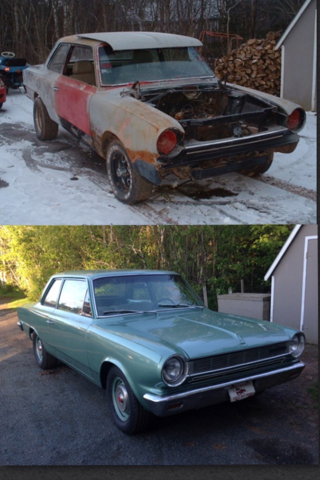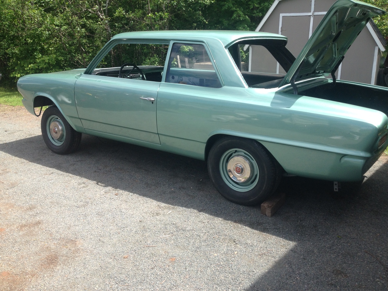 My son has a 1964 Rambler American. 2 door post car. Was in my garage for seven years while most of the fix up was done. Originally a flat head 6 cylinder, three on the tree car. So we fixed up what we could. We painted it in my garage. We did up a 343 V8 for it. Automatic transmission. And power steering. When son got it, it had a chev 305 automatic, Chevelle rear end in it. All that was changed to rambler parts and units. Still Rambler drum brakes all around.