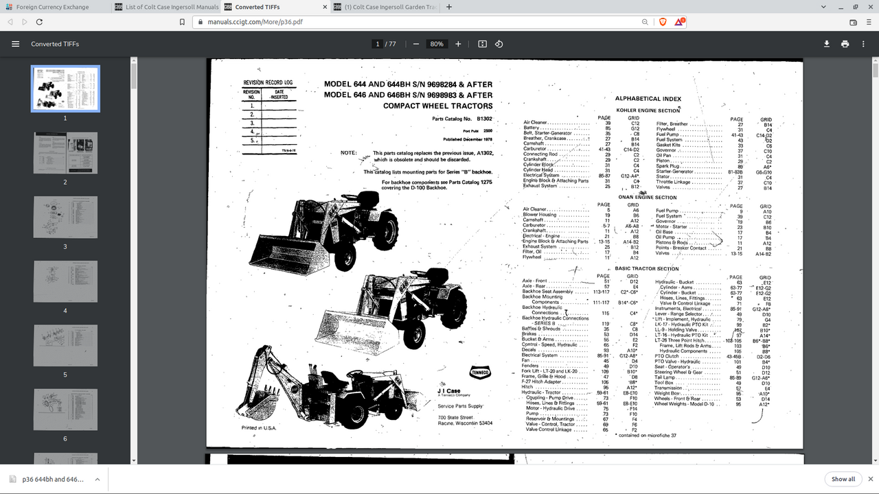 Over the years I have scanned copies of many, many Colt-Case-Ingersoll parts and service manuals. The problem with them right now they are in several different places on several hard drives and cds. I am sure a lot of them are the same manuals with different names.