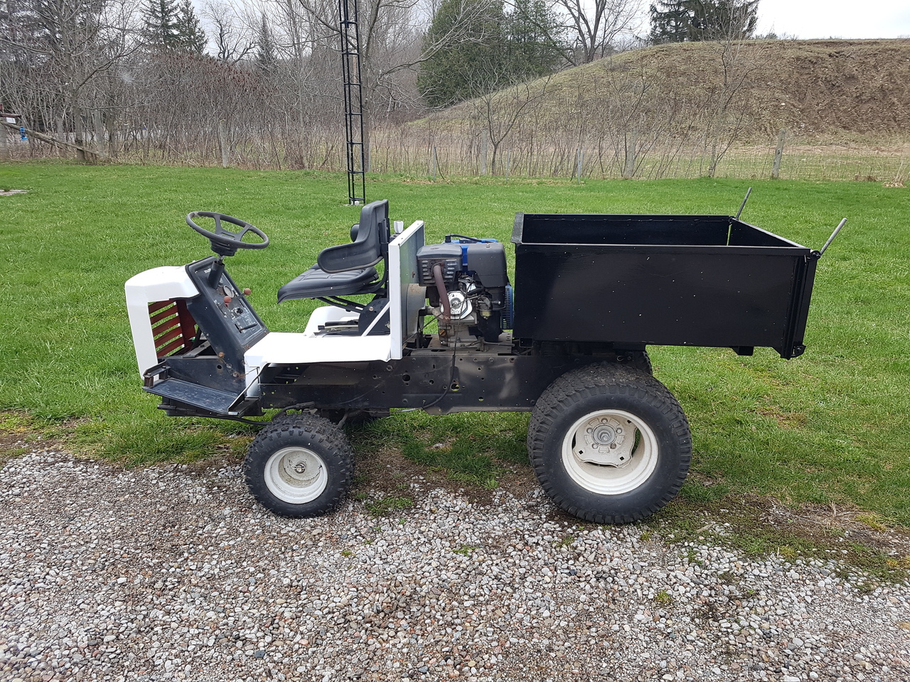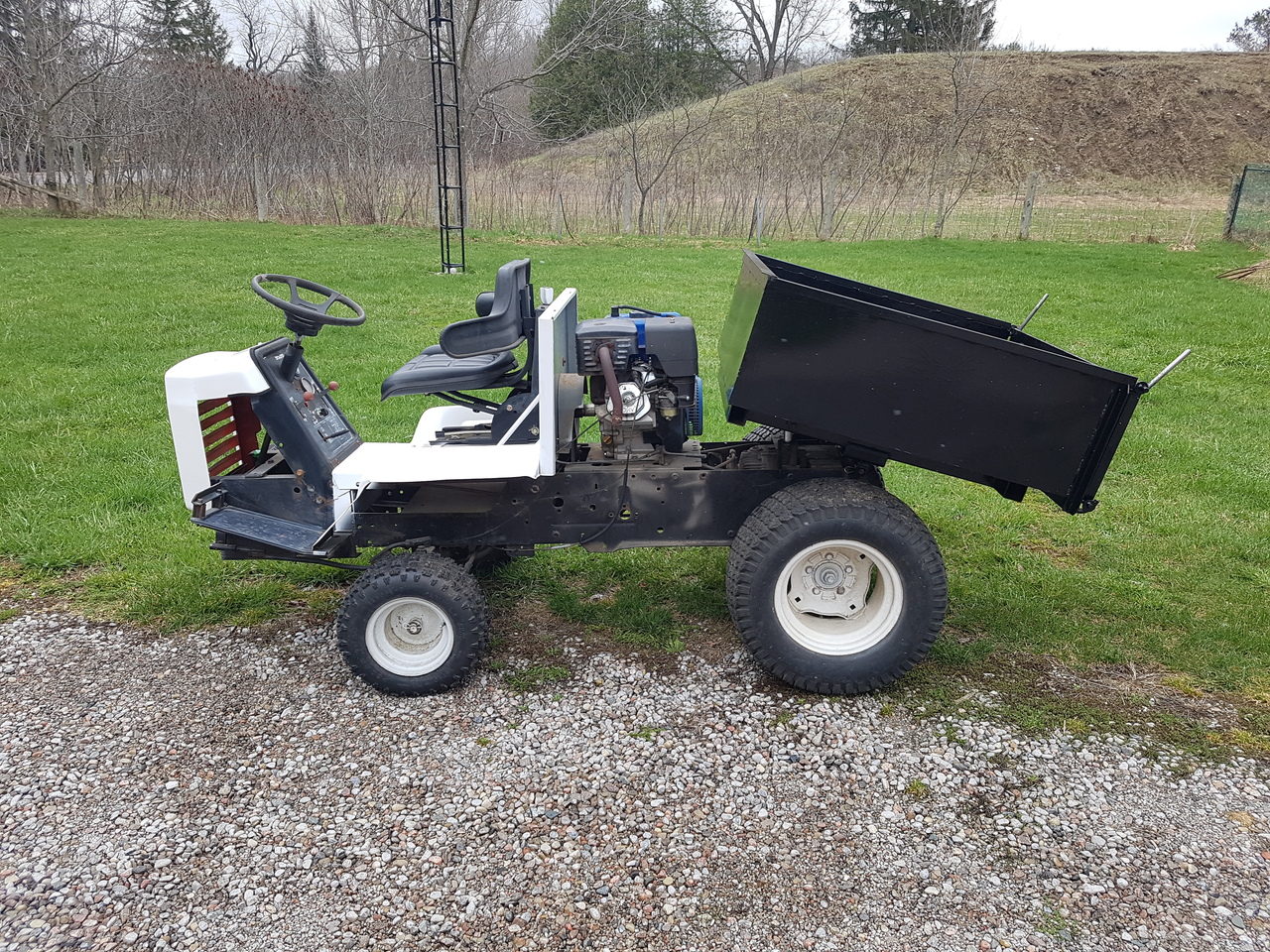 and grandson used it all the time until I built the golf cart with the dump box . Nothing is new but some paint , but everything works as it should . It will hold 9 cubic feet of soil in the box and haul it with no problem .