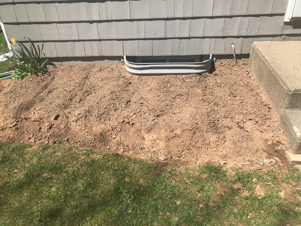 . Potatoes in on right side of step. Lettuce planted both sides of step. Carrots on the right side of window well and in front of it. Beets left front of window well. Green and yellow beans planted at the back on each side of the window well.Noel