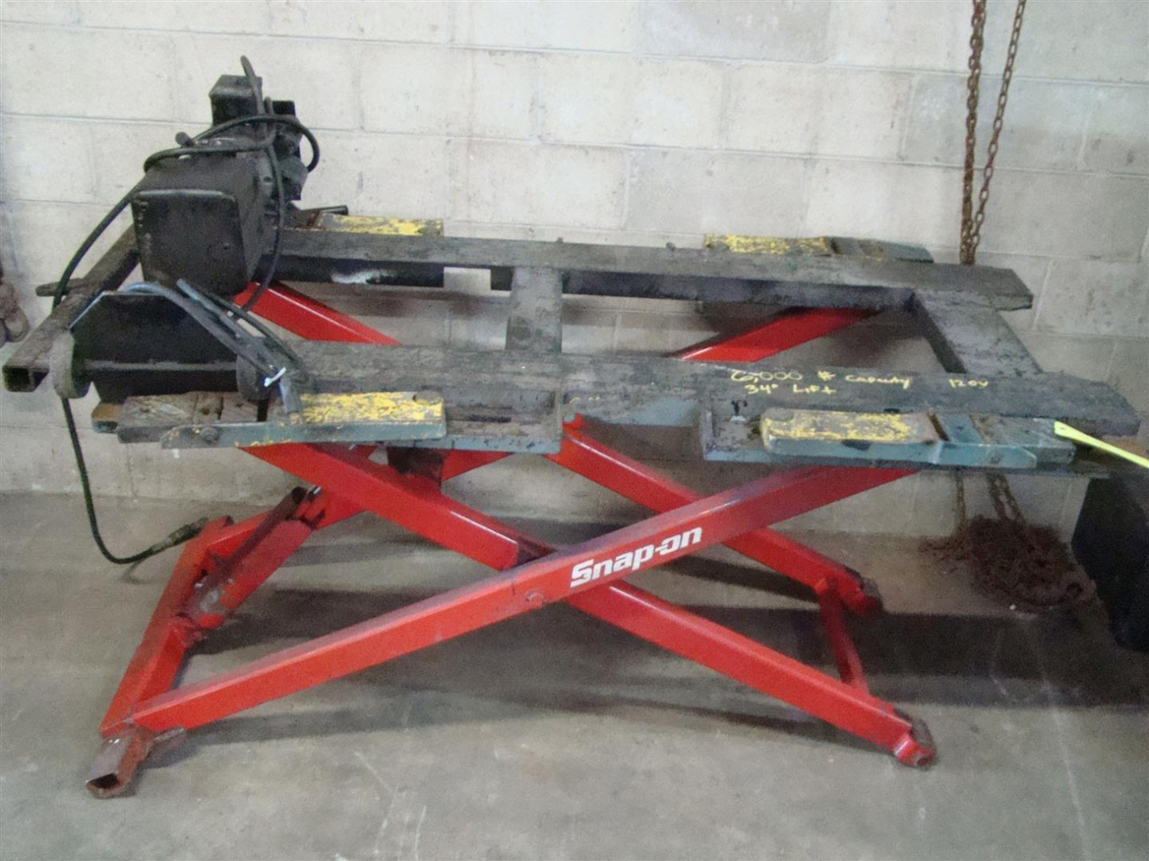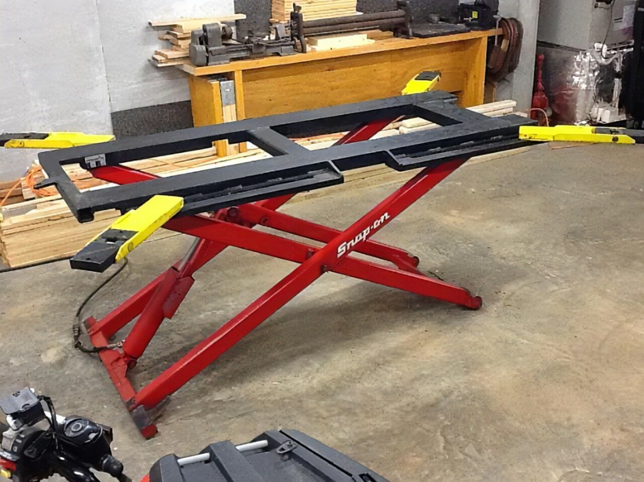 This is the lift I have in my shop. Not the actual pics of my lift in my shop, but it is the Snap on Lift as shown. It will lift 7000 lbs, so at times I have lifted my cars to rotate tires and change oil. Presently the 444 winter project is on it, and it's very nice to lift it up and lower it as needed.