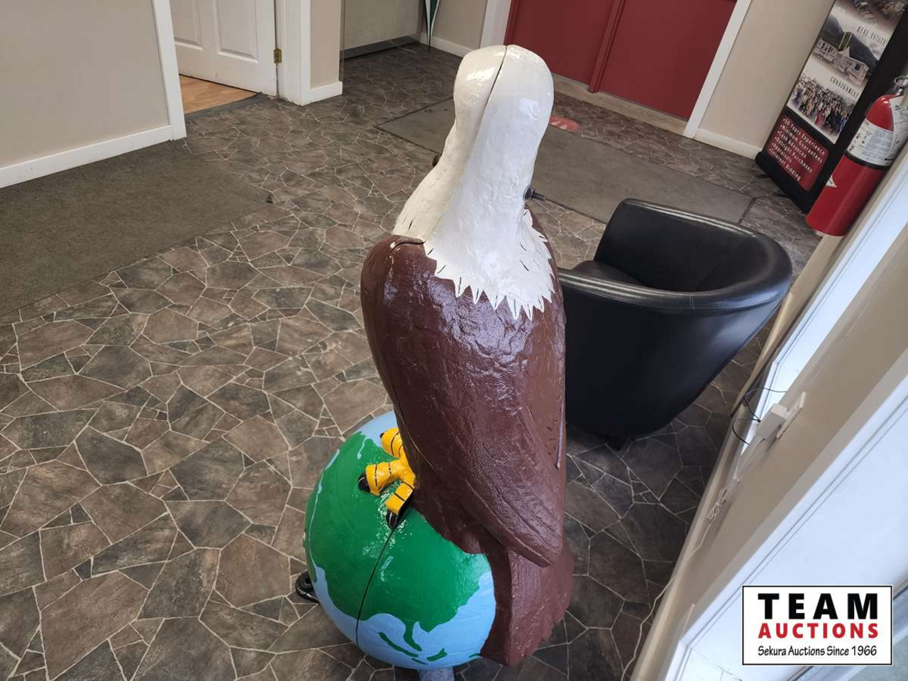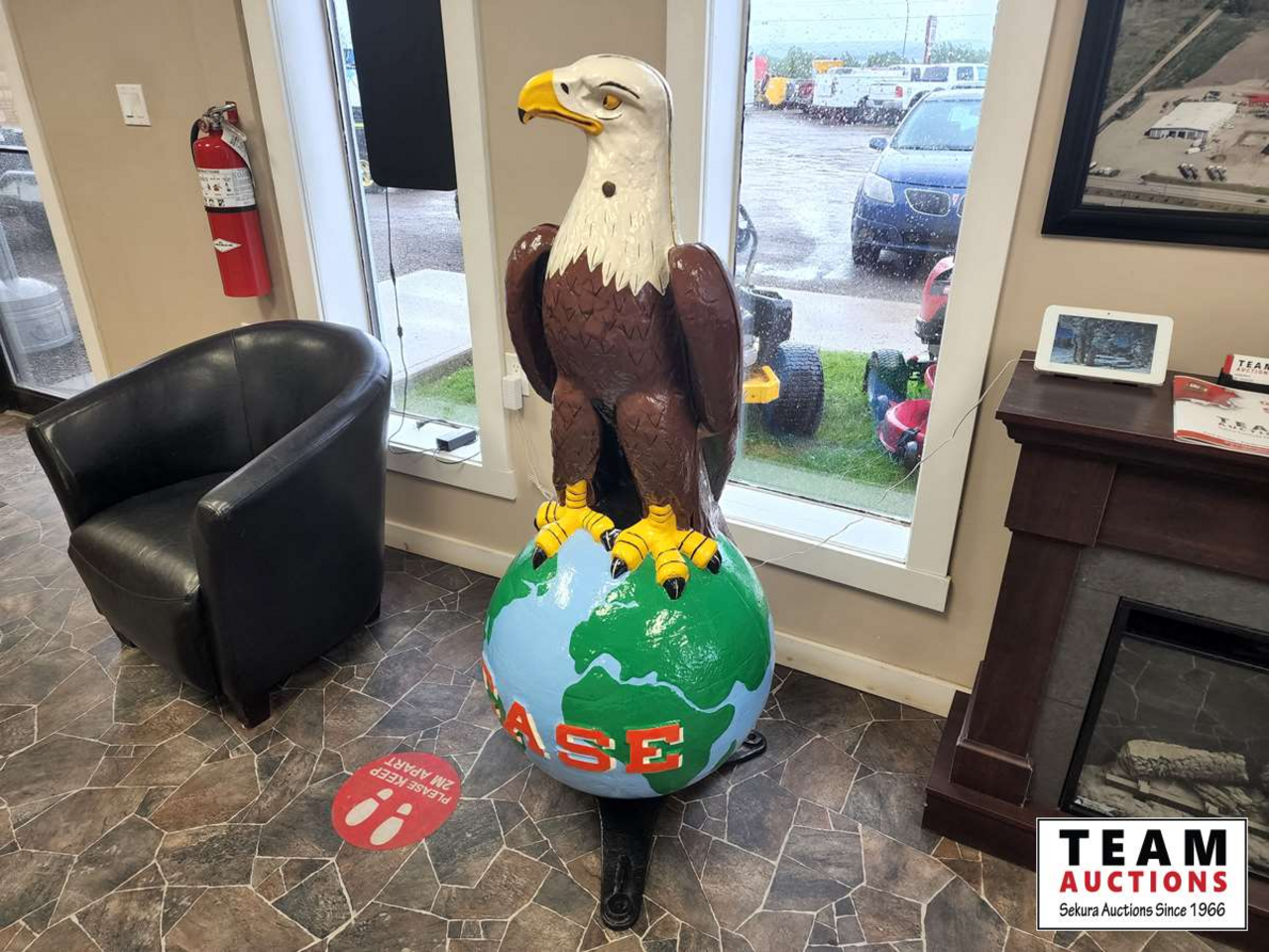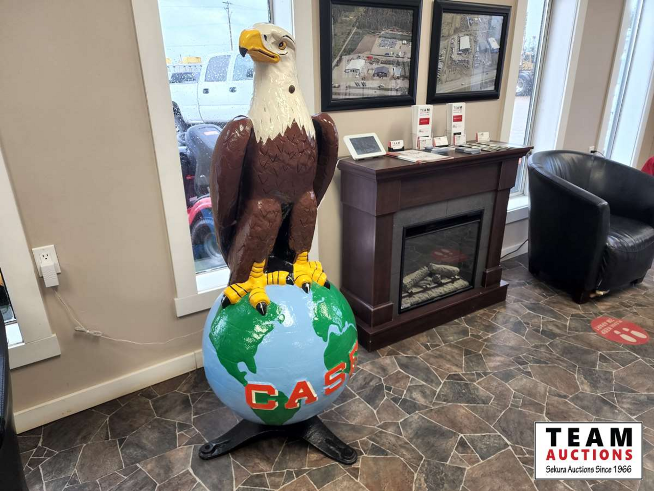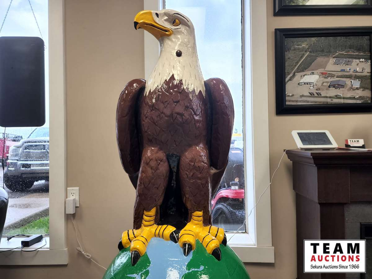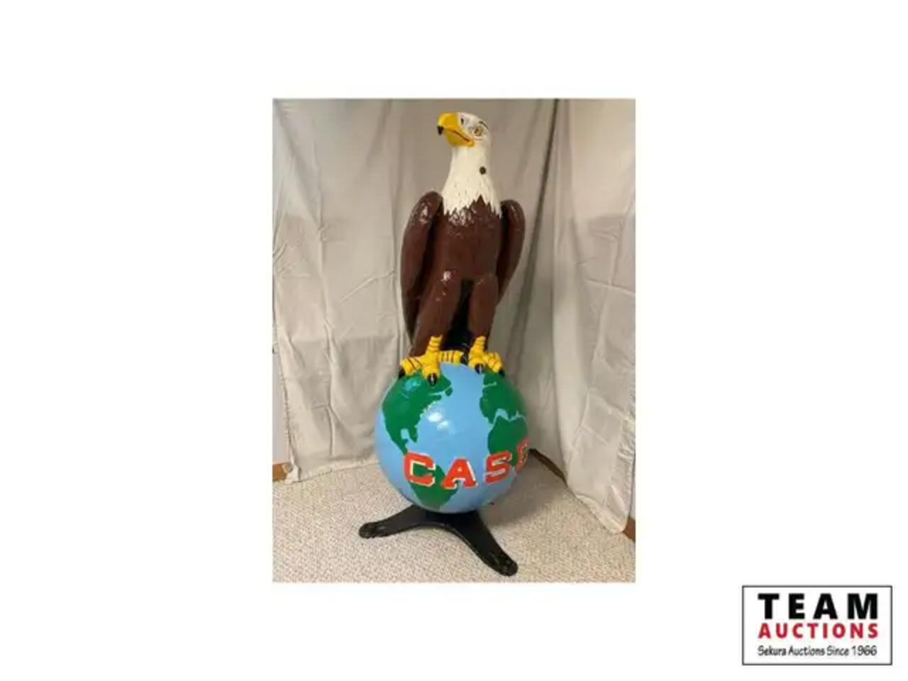 Very rare item used for dealer signage until 1969, 57-1/2” high, three piece cast, approximately 325 lb, recently painted with correct colors paint codes and placement, buyer will receive a copy of such including the story of ‘ Old Abe’ ** no cracks holes rewelds or repairs, once in a lifetime opportunity to enjoy some history. Bid with confidence, can safely package for shipping.