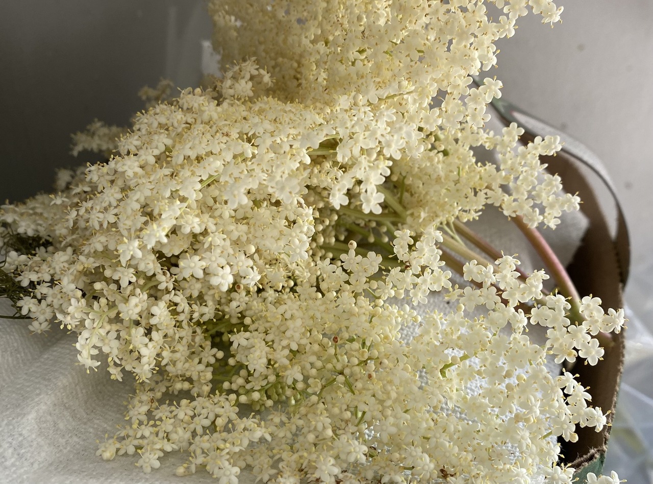 Elderberry bush flowers ready to be harvested.