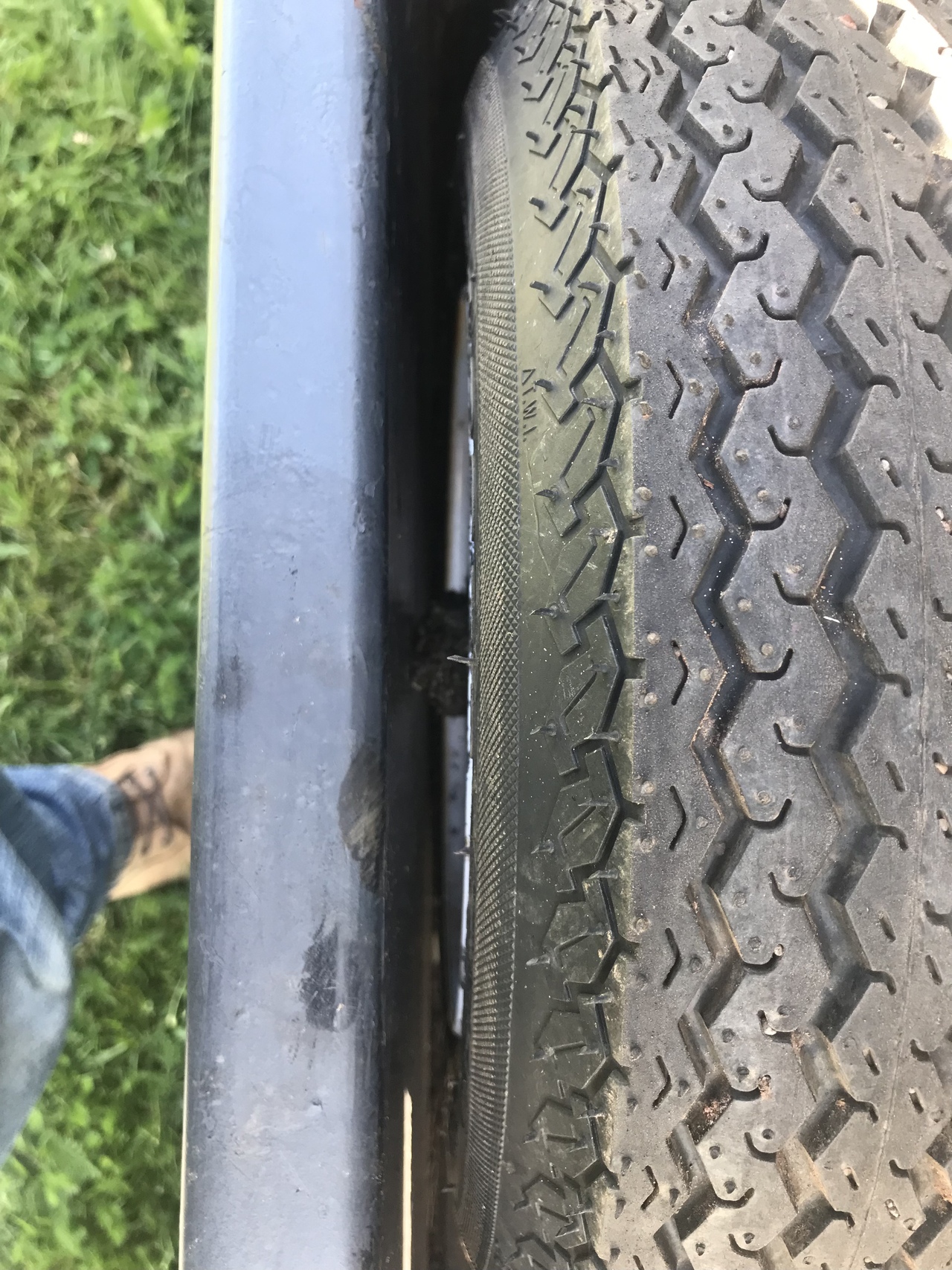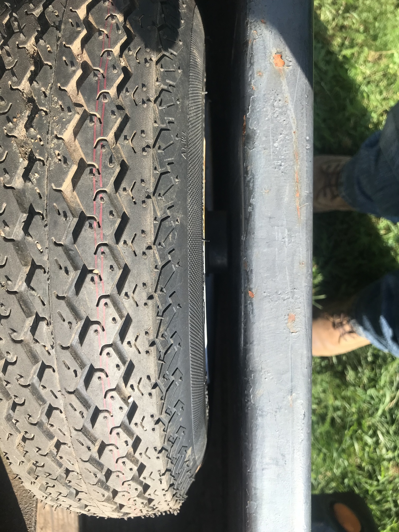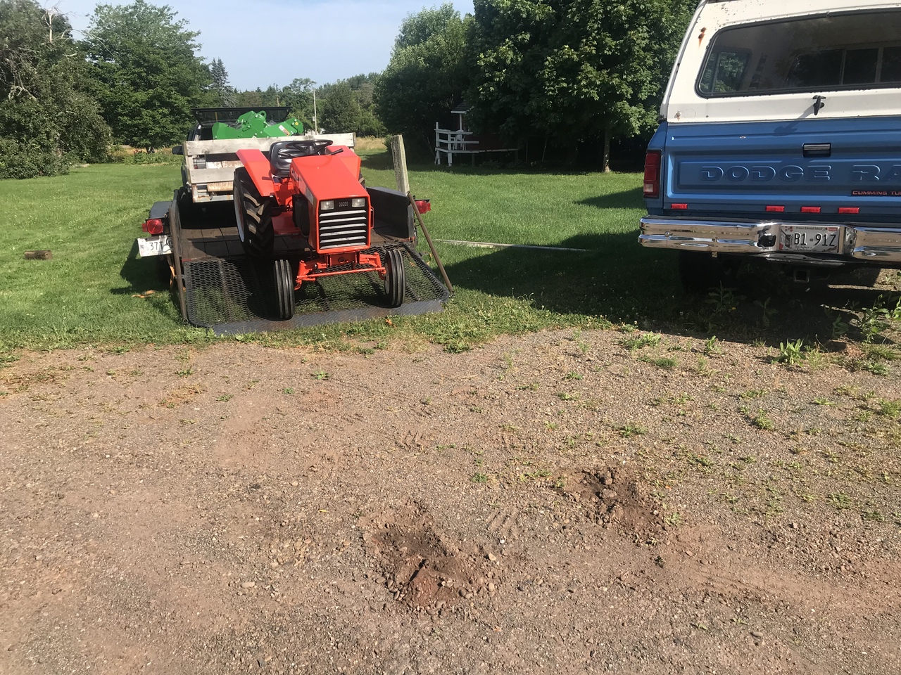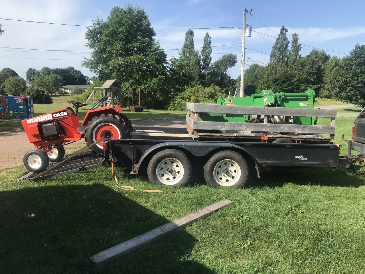 And for me. Holy cats had to load this trailer, with a 5’ Frontier tiller and a front bucket for 1025r JD on it, loaded on to my trailer. And as you can see not much room for fitting on to my trailer. The axles of the loaded trailer are almost or are hitting the sides of my trailer.